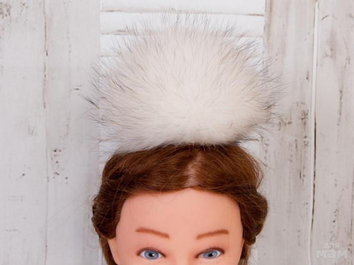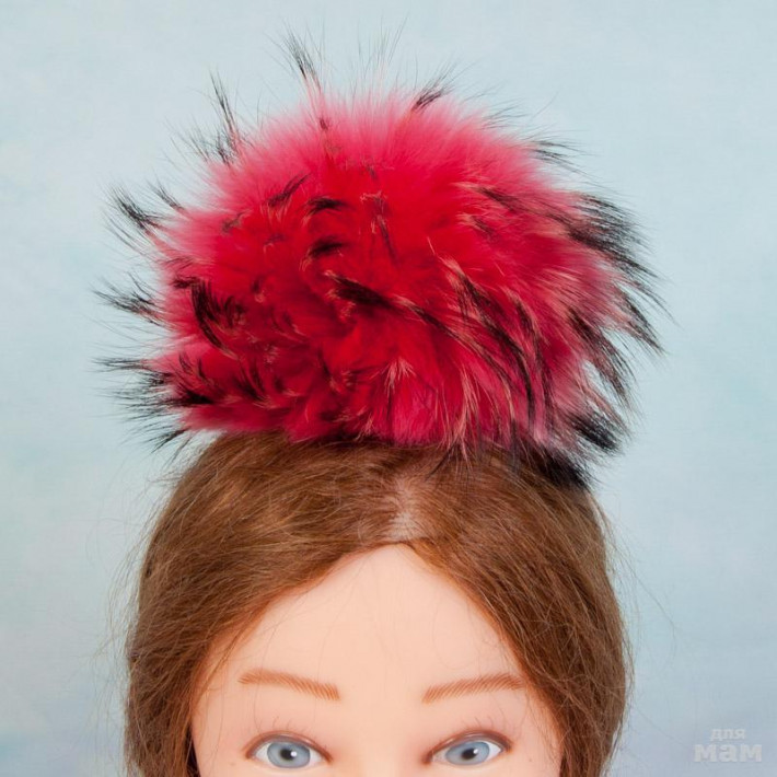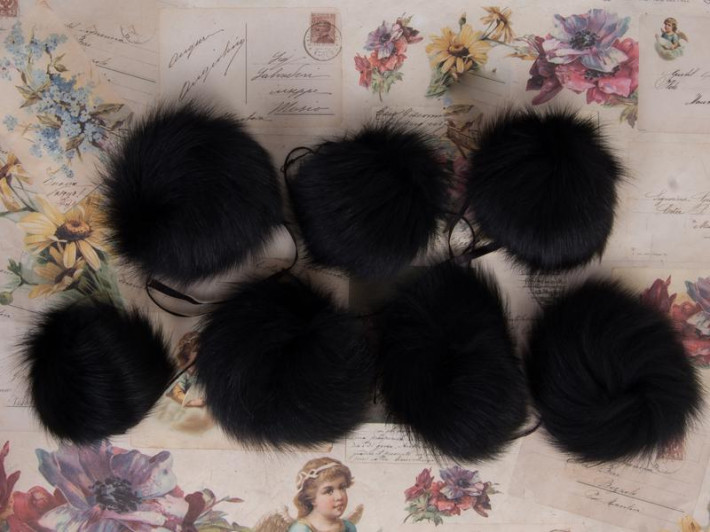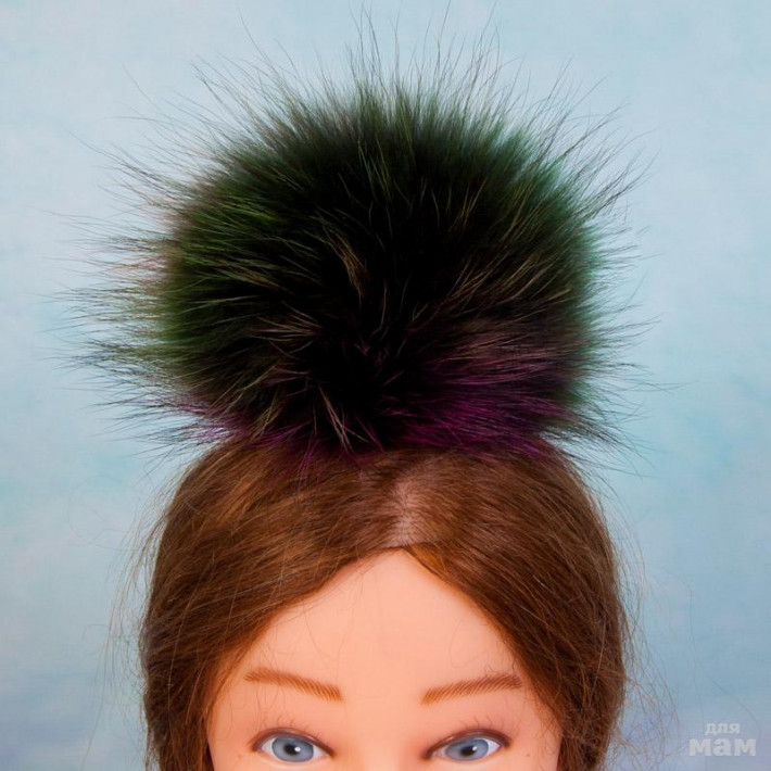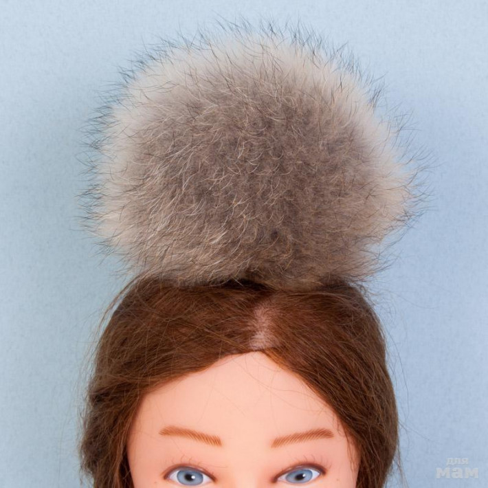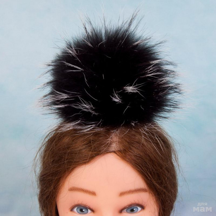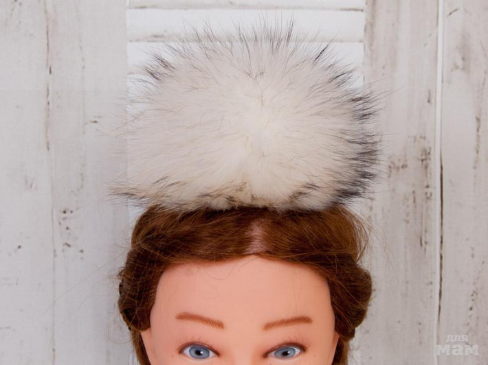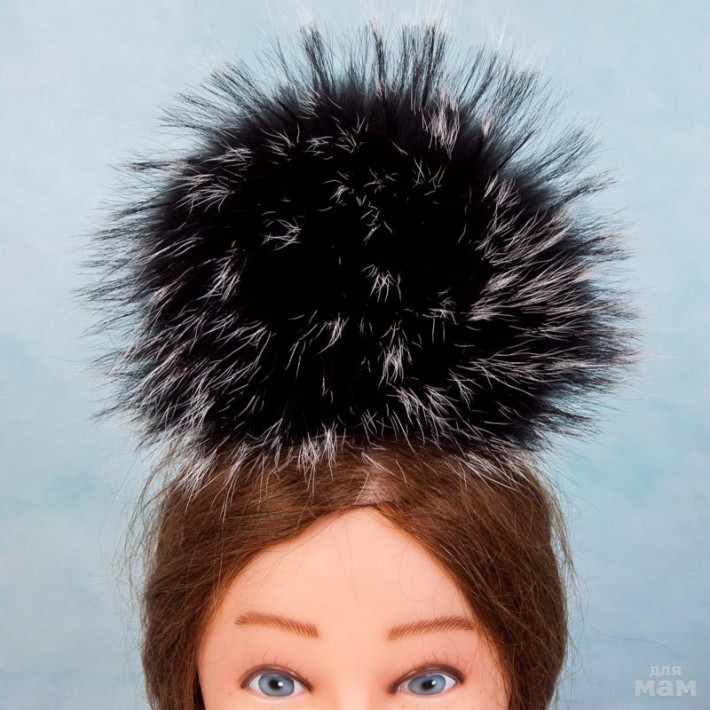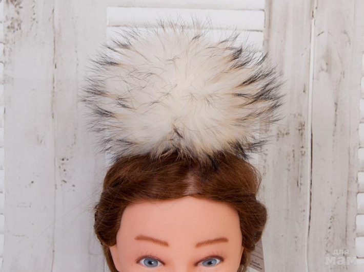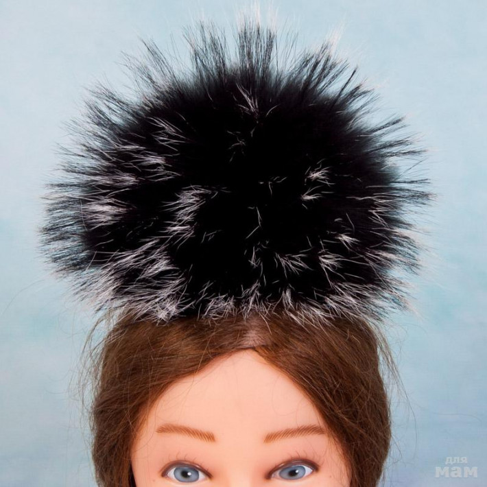 Помпон большой, очень ровный, круглый, высокий, благодаря чему смотрится еще больше. Меховой, набитый, плотный. Кончики черные.