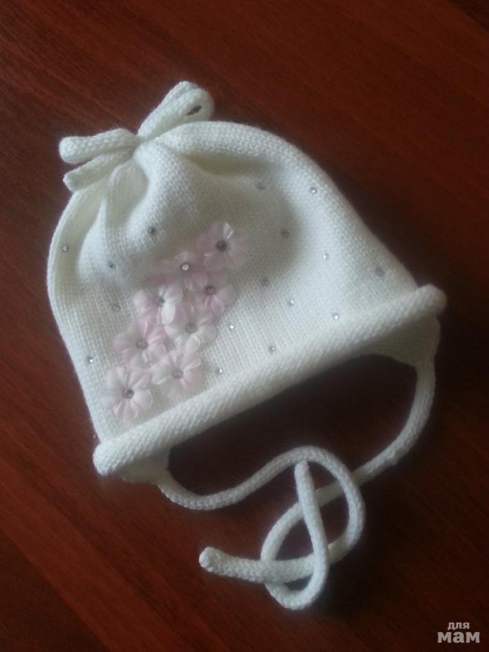 Шапочка попала в пристрой, т.к. выяснилось, что у заказчицы все-таки будет мальчик (пришлось срочно вязать другую..с декором для мальчика)