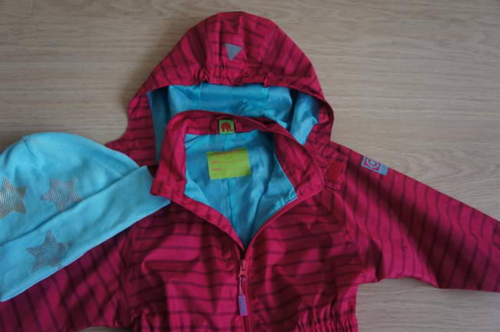 Комбинезон Датской фирмы SeLaVi, непромокаемый, непродуваемый. С поддевой-на весну, без-летний дождевой комбез. Мембранная ткань, качество великолепное. Все продумано-хорошо закрыто горлышко, утяжечки на талии. Состояние идеальное. размер 98-легко можно до 105-106