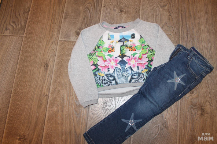 Джинсы размер 5. Утяжки нет. Состояние хорошее, отвалились некоторые стразики на звездах. В остальном нареканий нет.