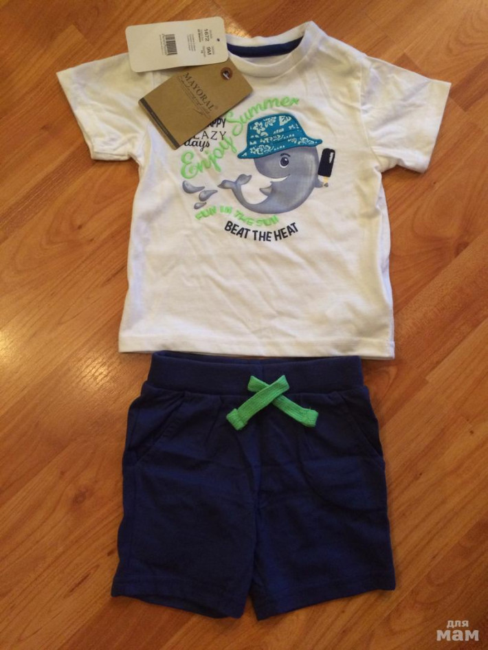 3. Комплект футболка + шорты Mayoral (Майорал) размер 9 мес (74 см). Новый, с этикетками, бирками! Очень красивый, модный! Цена 1000 руб.
