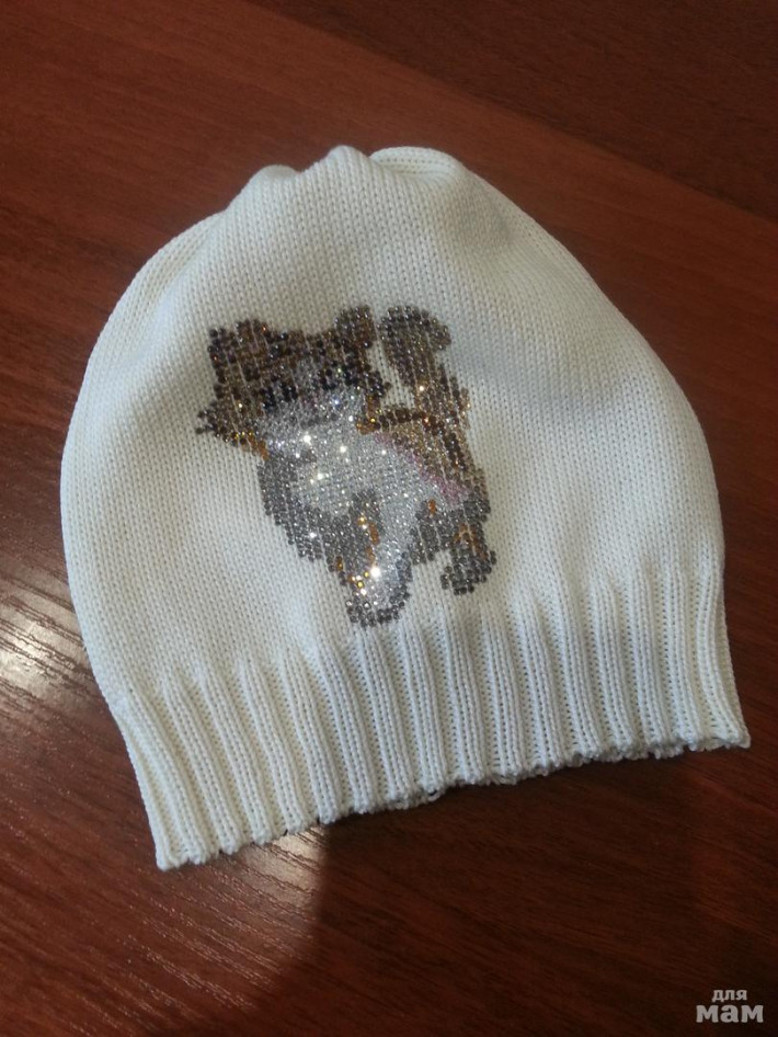 Легкая хлопковая шапочка с авторским декором из хрустальных страз ручной выкладки.
