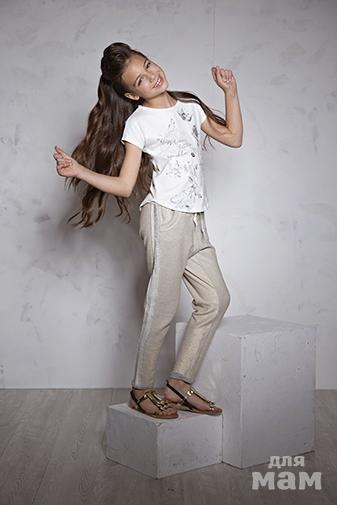 Трикотаж, 100% хлопок. Ткань бежево-золотистая, по бокам стразики. Стиль спортшик.
