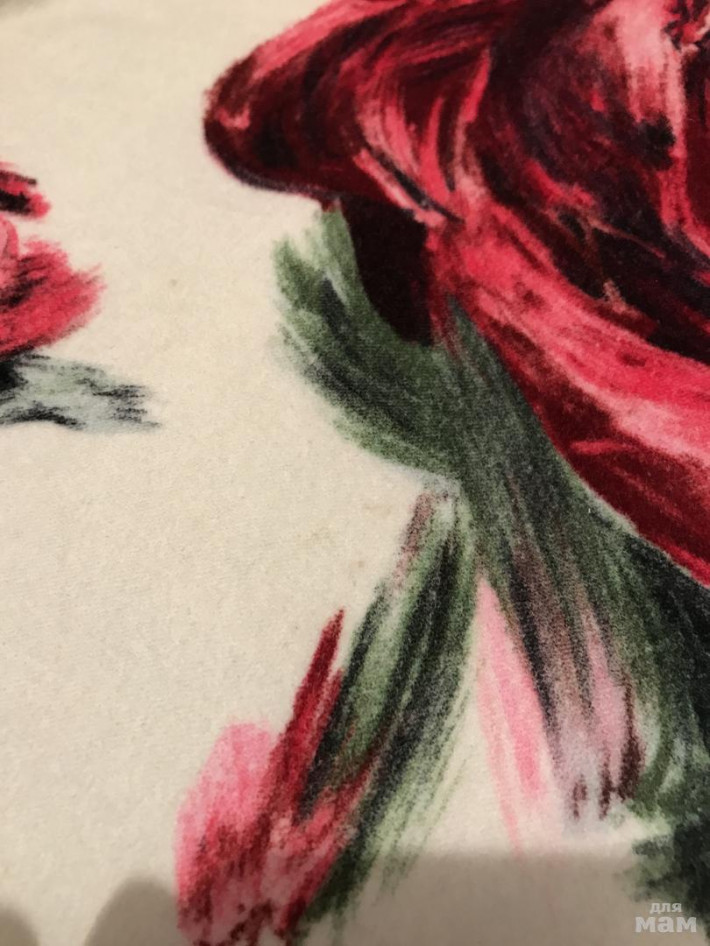 Состав 100% хлопок указан на бирке, но манжеты вязаные с люрексом. Оно тепленькое. Мы надевали 3-4 раза, но каждый раз стирали, по рукавам, как на любой хлопковой вещи, немного заметно, что стиралось