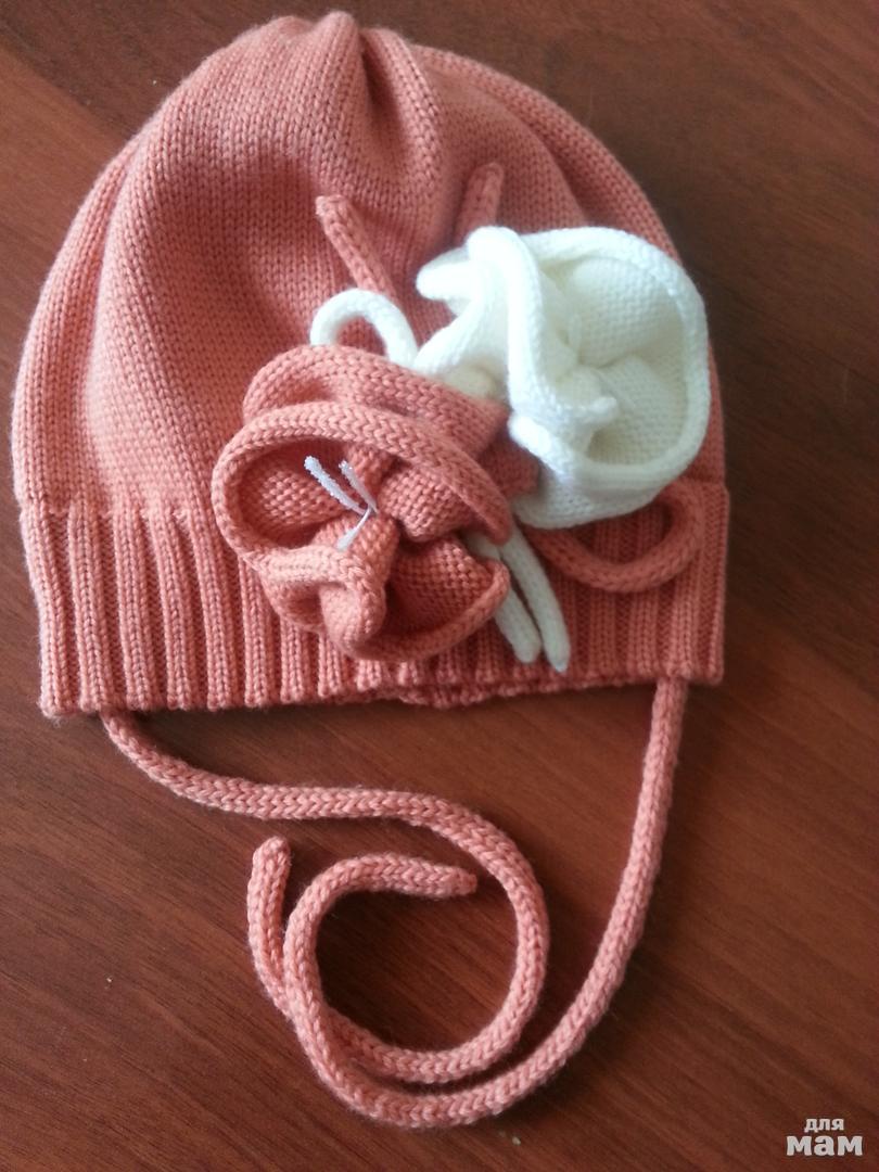 4. Нежная, очень мягкая шапочка ручной работы на новорожденную девочку. Отличный вариант на весенне-осеннюю выписку.