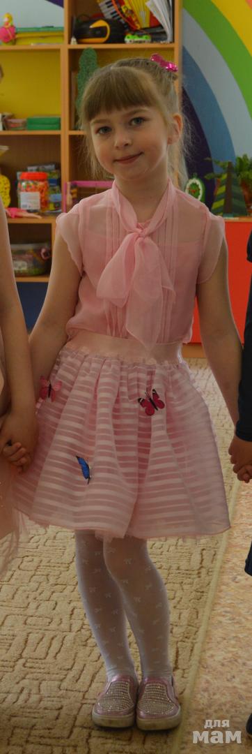 надели вчера на 40 мин на утренник,даже бирочку не срезали с блузки. блузка 116+юбка 122, нам широковата резинка,мы худые. в процессе носки чуть спадает, ушивать не вижу смысла.... бабочки 3Д.