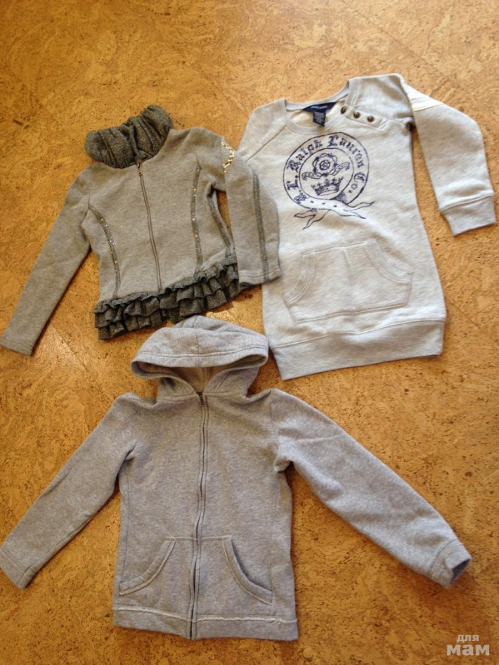 -серая с капюшоном кофта фирма бенеттон. цена 400 рублей.- серая кофта с рюшами. италия. цена 1200руб. - серая туника ральф лаурен. классная.размер 4/4т. цена 800 рублей)