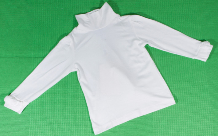 У них в составе 95%вискозы. Сидят водолазки отлично. Вам нужен размер 6А. В размере 5 могут быть короткие рукава.