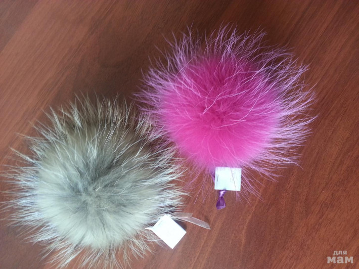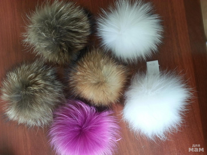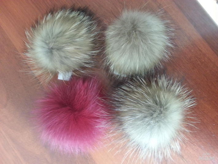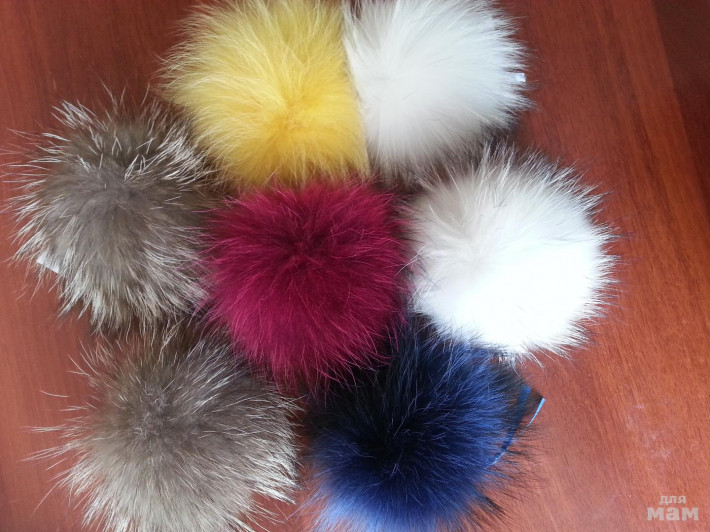 Разбирая свои запасы обнаружила ненужные мне помпончики среднего размера (все помпоны делала сама, из целых шкур). Помпоны все на ленточках.