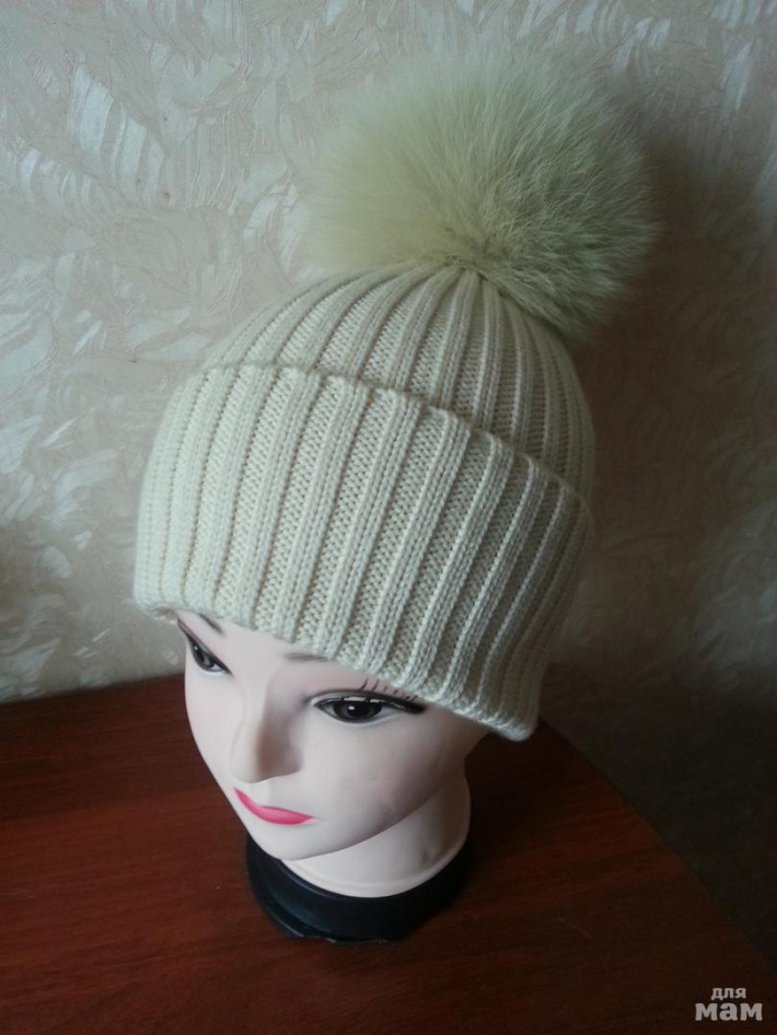 Есть еще такая же по плотности шапочка р. 52-54, но с помпоном из песца натурального бежевого цвета (экрю, цвет неотбеленного льна). В реале цвет чуть потемнее...на фото плохо передается.