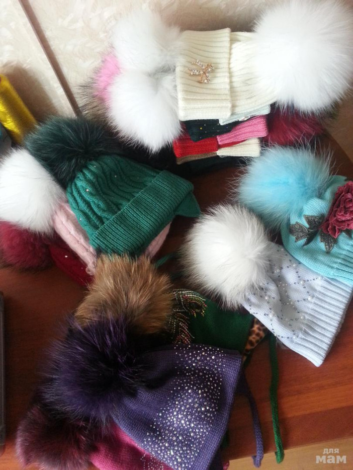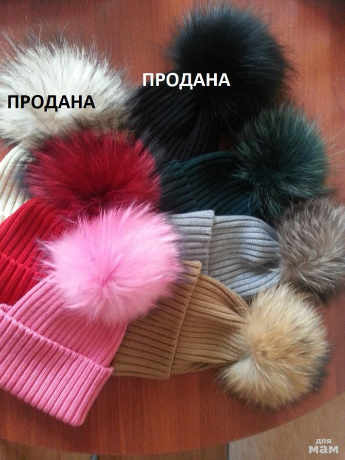 мята с 2-мя помпонами и пришивными ушками р. 46/48 - 1000 р.