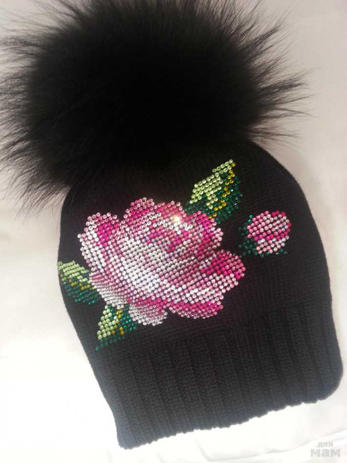 Декорирована розой из чешских хрустальных страз ручной выкладки.