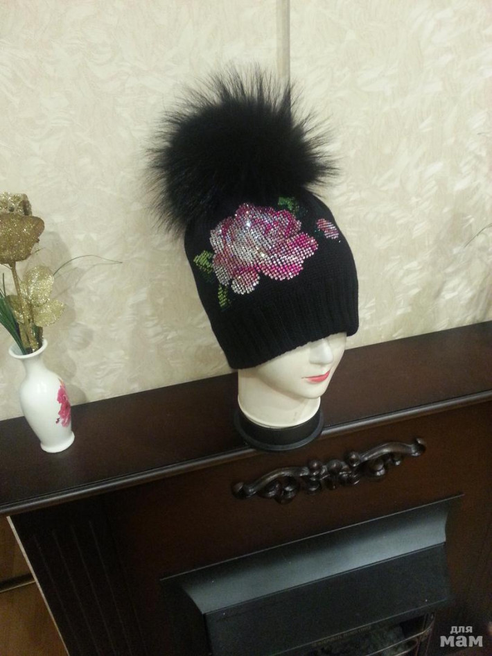 Очень теплая зимняя двухслойная шапочка для взрослой девочки или молодой мамочки.