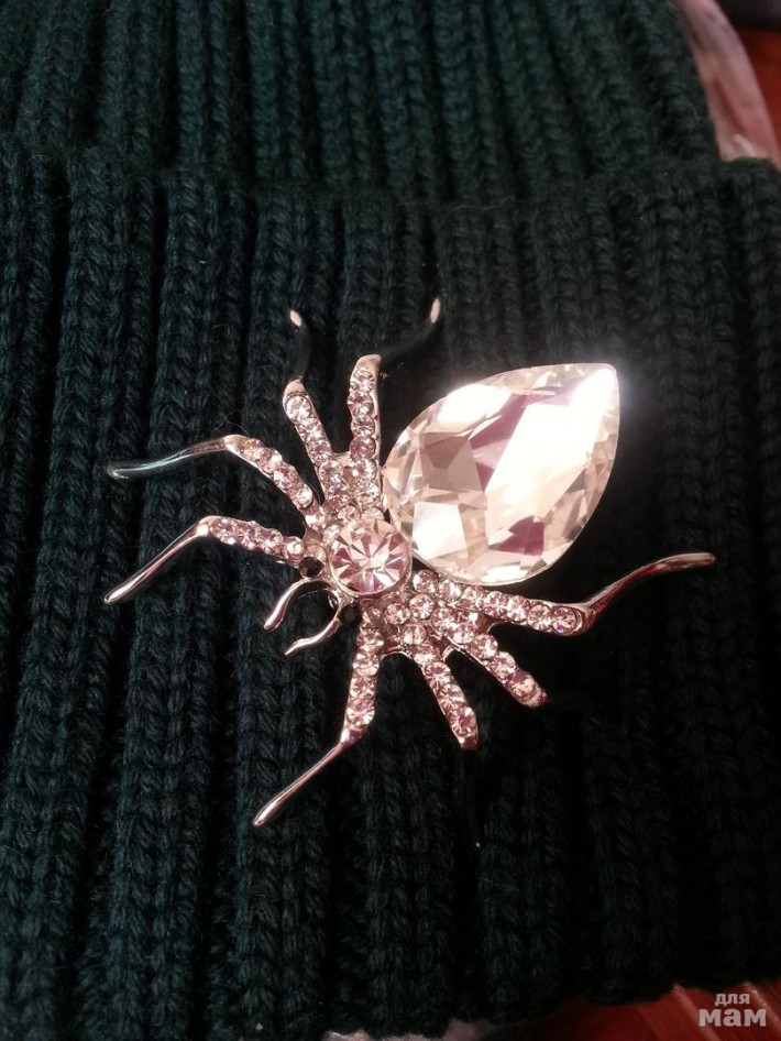 малахитовая р. 50-53, помпон - малахитовый енот, брошь - серебристый паучок