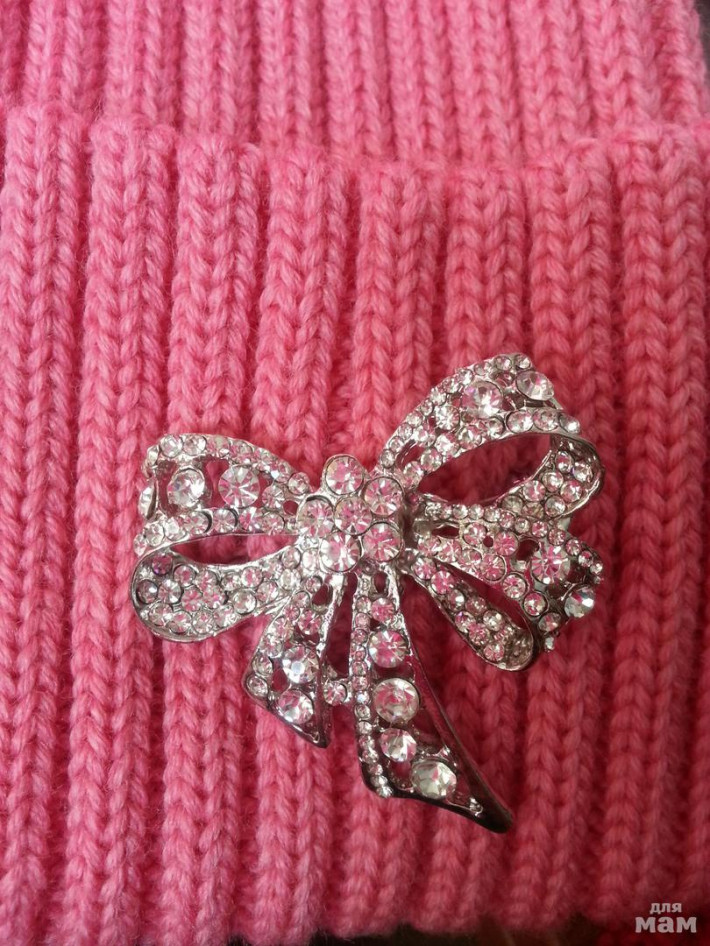 розовый коралл (темно-розовая) р. 50-53, помпон - ярко-розовый енот с темными иглами, брошь - серебристый бантик