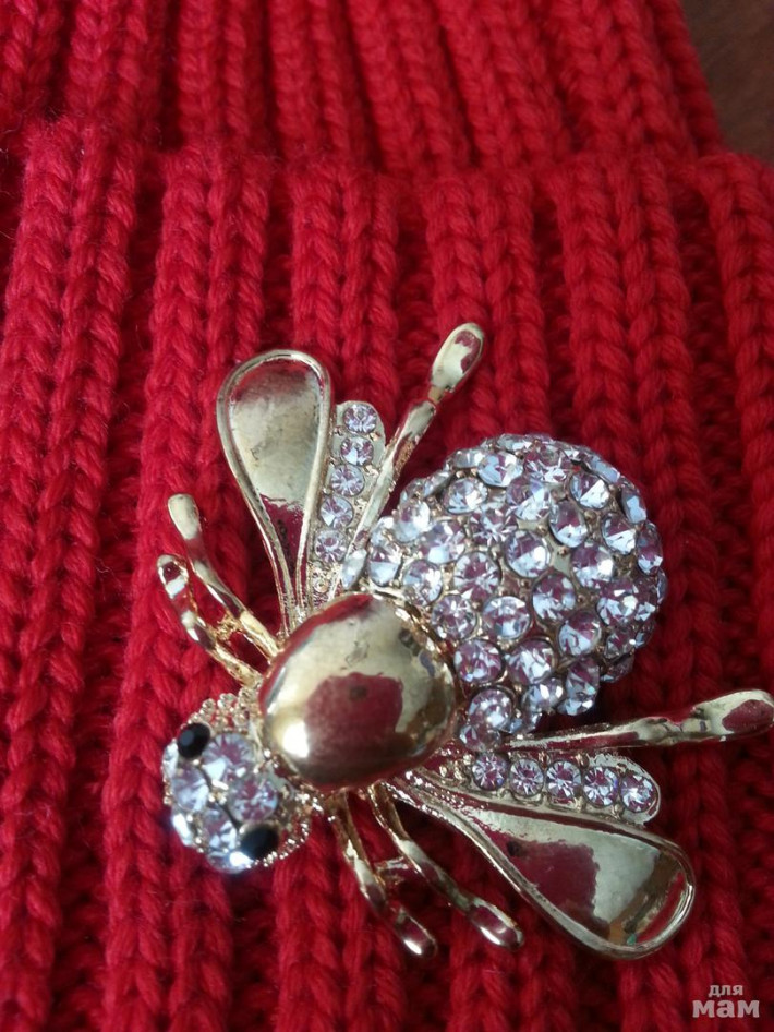 ярко-красная р. 50-53, помпон - красный енот, брошь - золотистая пчелка