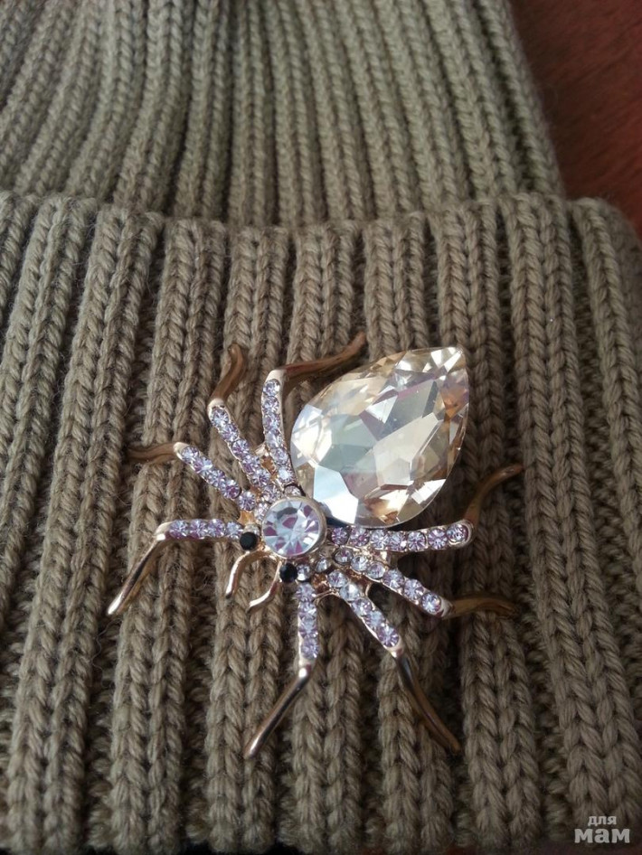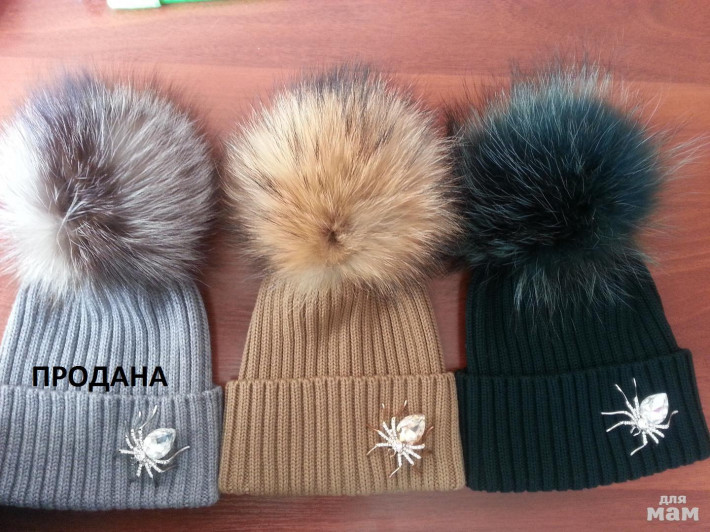 светло-серая р. 50-53, помпон - чернобурка, брошь - серебристый паучок ПРОДАНА