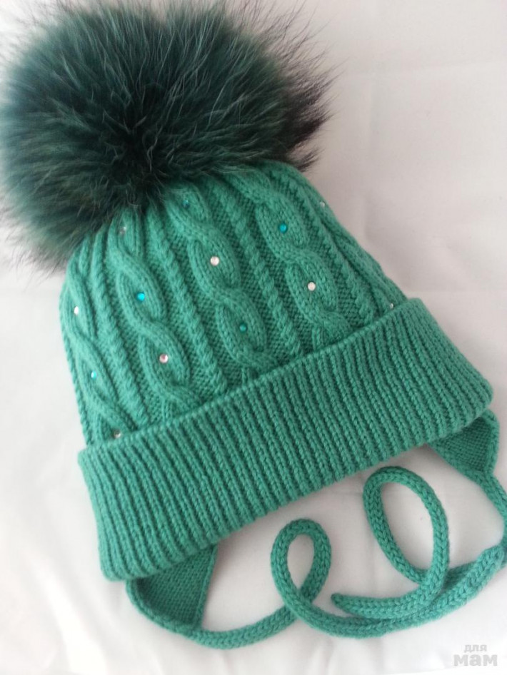 изумрудная меринос р. 50/52, помпон - изумрудный енот. Декорирована хрустальными стразиками двух цветов