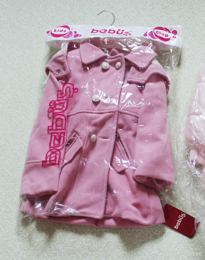 Новое пальтишко,не носили. Утеплено флисом,на холодную осень. Капюшон отстёгивается.Цвет нежно розовый,как на ребёнке. У дочки на фото рост 98 см.,по мне сидит при этом росте хорошо,но рукава длинноваты,или у нас руки короткие )))