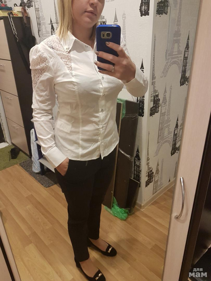 Пристрою белую блузку Amnesia. Размер 2. Русский думаю 44-46. Красивая блузка, материал со стрейчем.