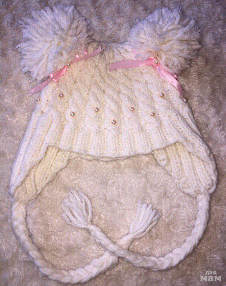 2. Шапочка новая, вязалась на заказ, без утеплителя, сезон осень/весна, р.48-50. Помпоны из пряжи съёмные. Цена 850р.