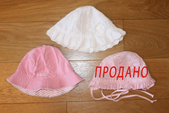 8. Панамки на девочку в отличном состоянии. 1. Панамка Mothercare. Размер 24-36 месяцев(сильно маломерит). Цвет белый. Цена 100 рублей. 2. Панамка Mothercare. Размер 12 месяцев. Цвет розовый. Цена 100 рублей. 3. Панамка BeBe. Размер 46-48. Цвет розовый. ПРОДАНА!!! Цена 100 рублей
