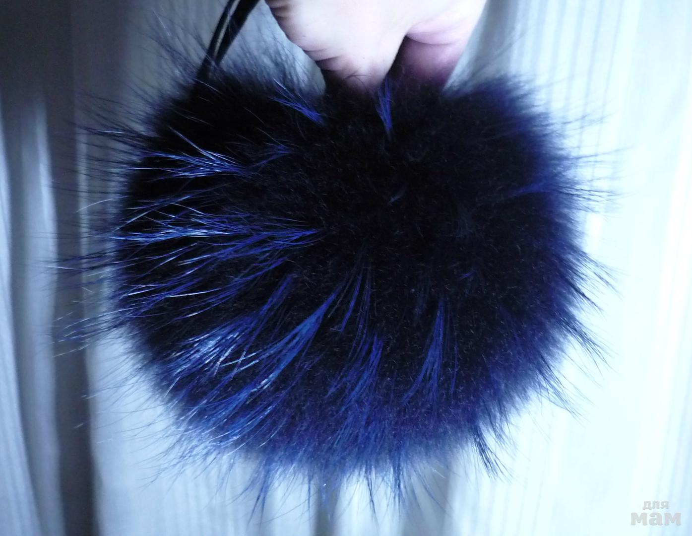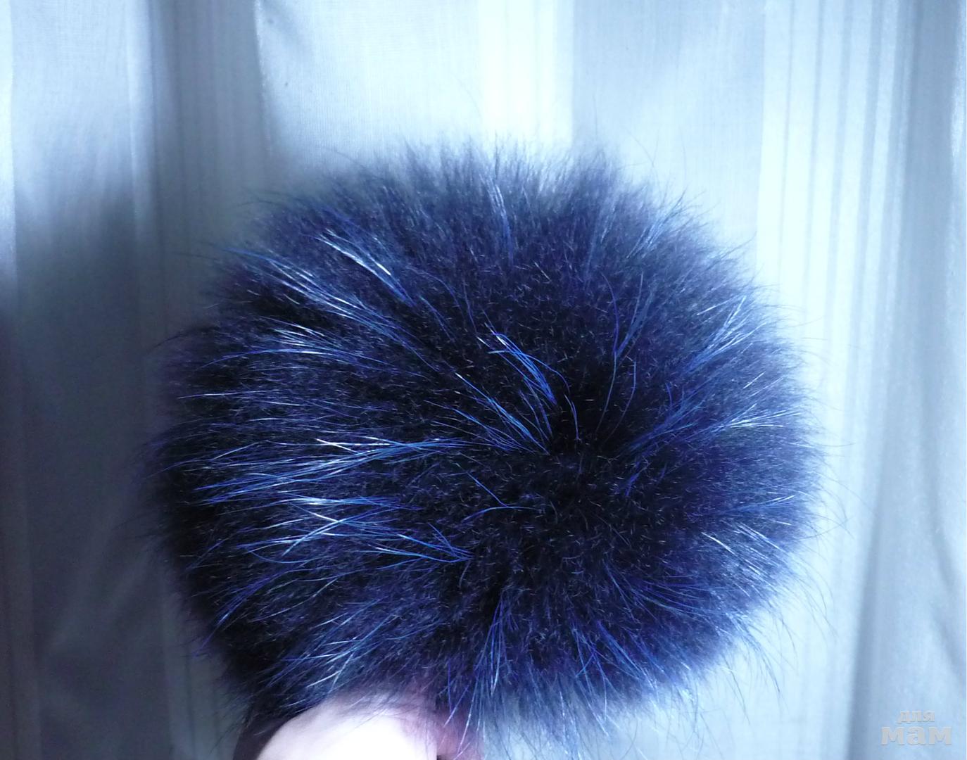 меховой помпон №00-0521.енот финский.цвет т.т.т.синий. размер- 19см. цена- 1500р.