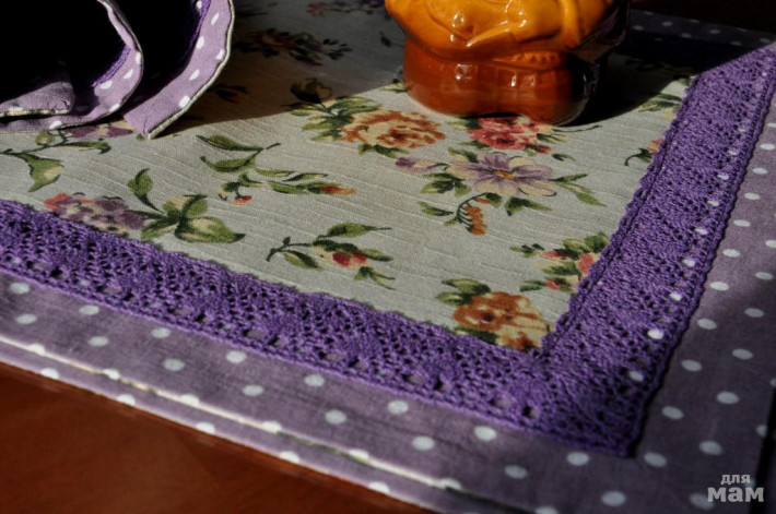 Немного красок вам в ленту, фиолетово - лиловый, нежность и красота. Сервировочная салфетка из двух слоев ткани, плотная и хорошо впитывает влагу. Красота на столе и практичность, все, что надо хорошей хозяйке.