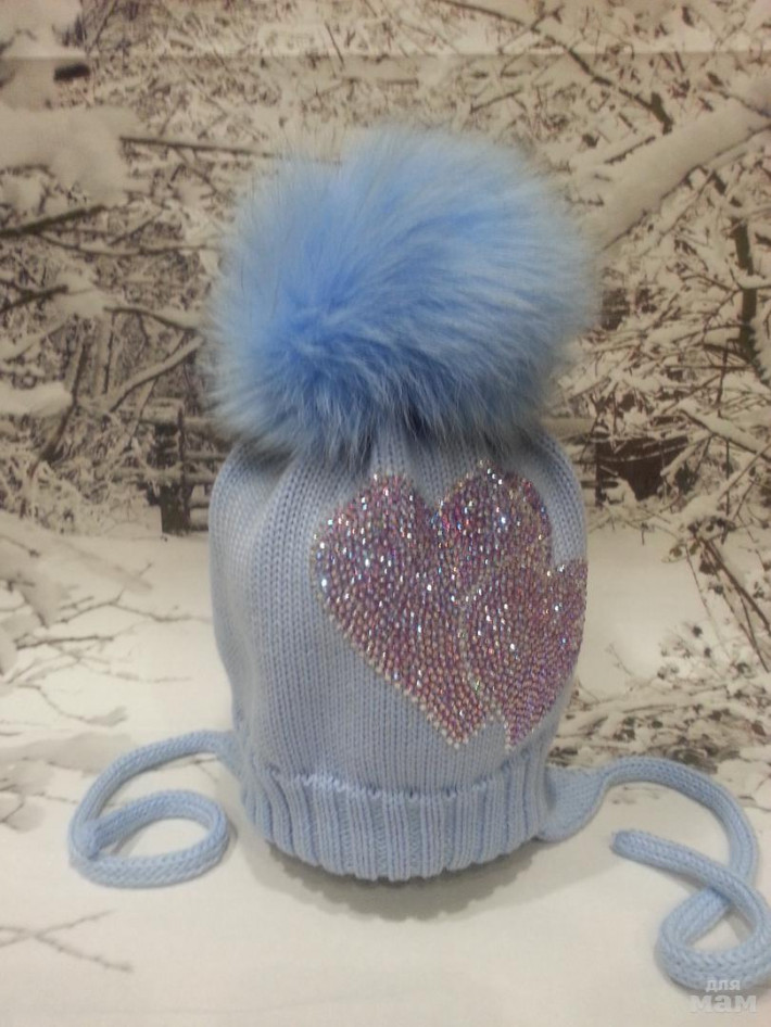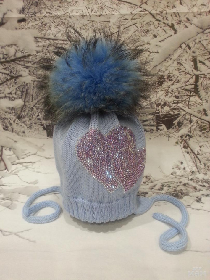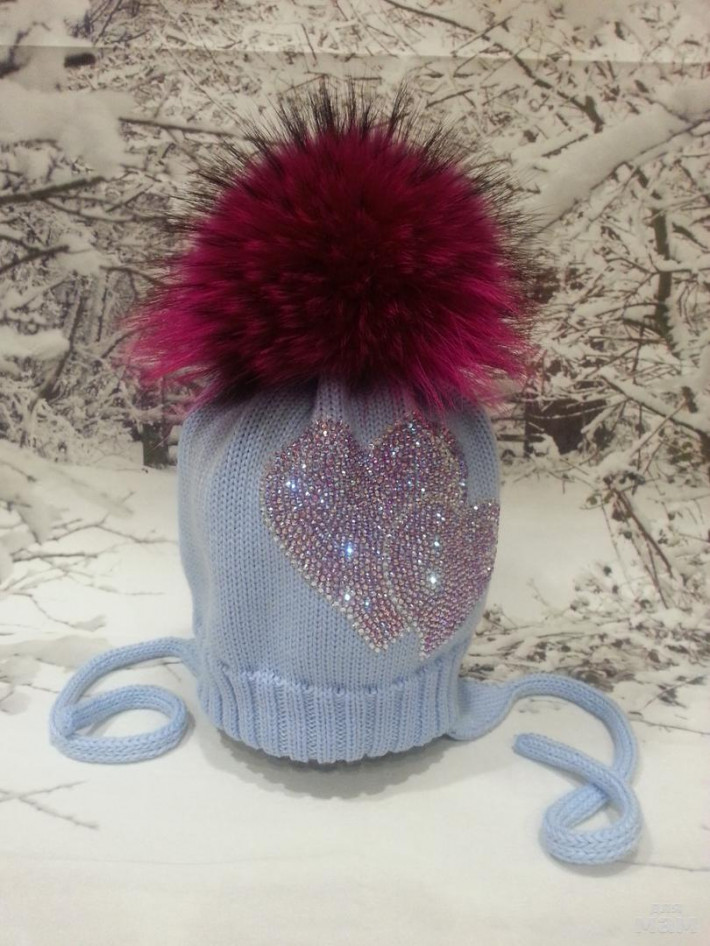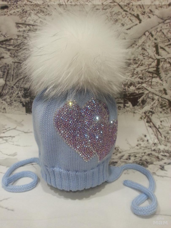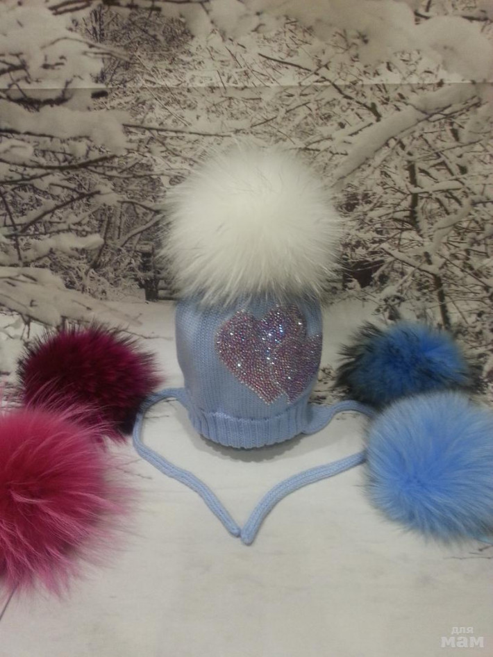 Цена указана за шапочку с помпоном из белоснежного енота с темными кончиками 21 см.
