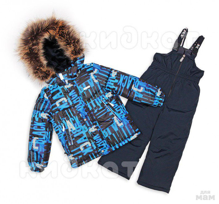 - Куртка с ярким принтом, полукомбинезон синего цвета