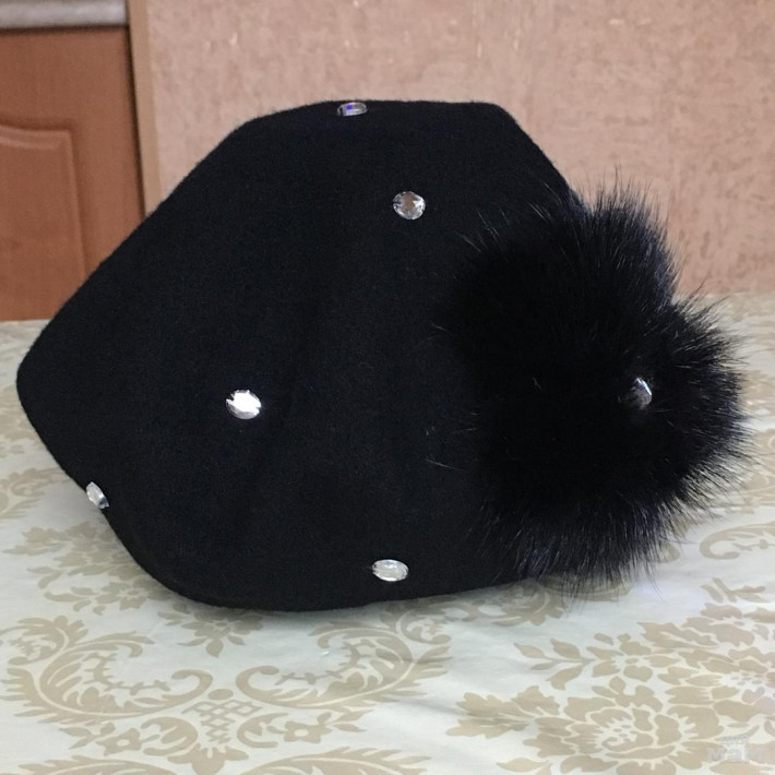 Чёрный 1500р норка по всему берету