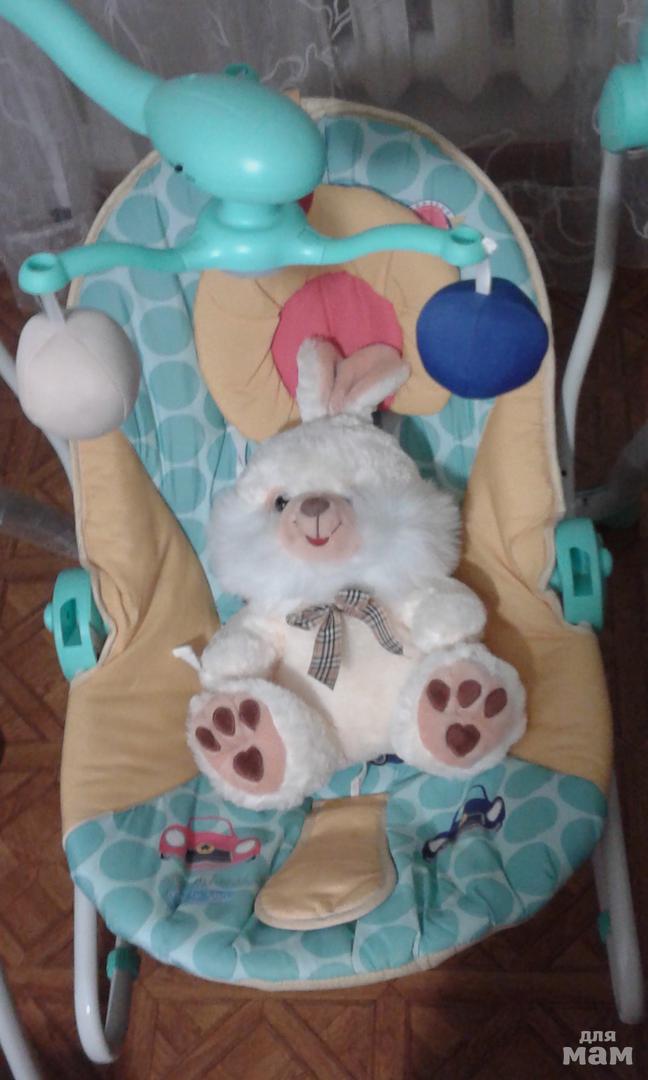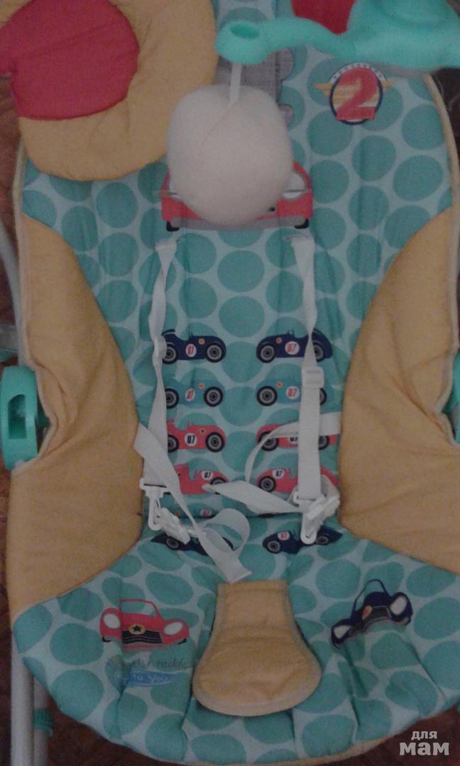 Механическое музыкальное кресло качалка со съемным мобилем со светомузыкой. РАботает от сети! Также есть пульт для дистанционного управления. Это кресло как палочка-выручалочка: во -первых нет необходимоси тратиться на батарейки, включил в сеть и все, во -вторых можно управлять при помощи пульта.Спинка раскладывается до трех положений. Есть съемный столик.Сверху установлен музыкальный крутящийся