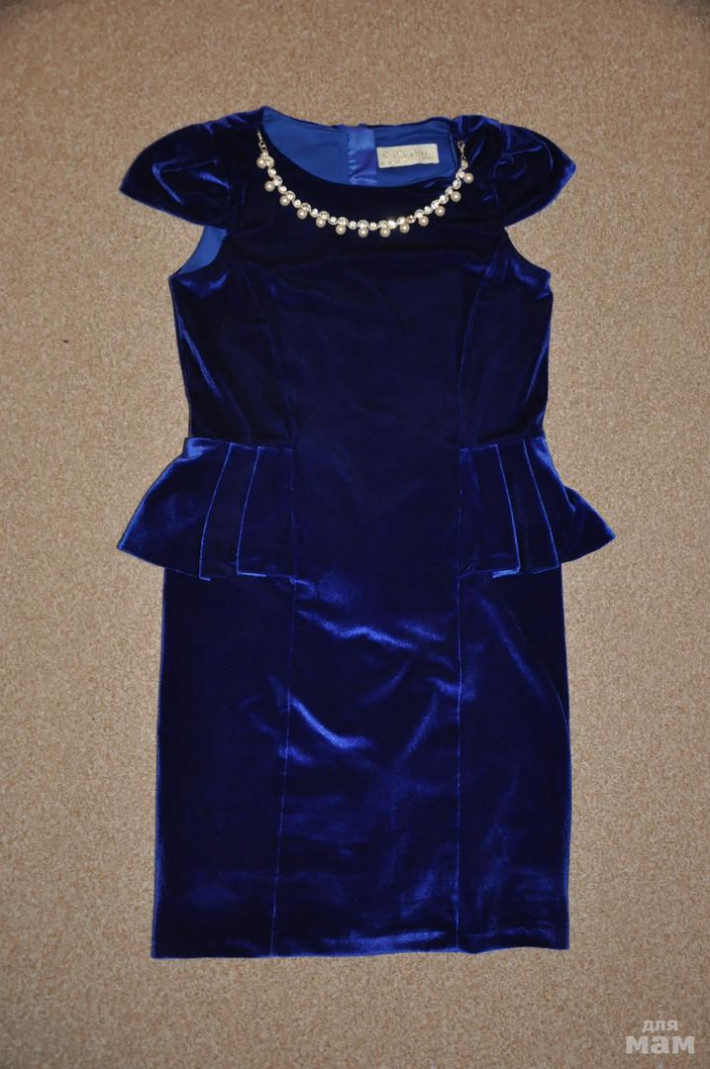 Очень красивое ярко-синее платье Перлитта. Материал велюр-стрейч, подклад хлопок, садится по фигурке, очень стройнит. Юбка прямая с баской, сзади шлица.Ожерелье( жемчуг) можно отстегнуть.Одевали 2 раза, в фирменном кофре. Фото на ребенке в Лс, по запросу.Все замеры сделаю.