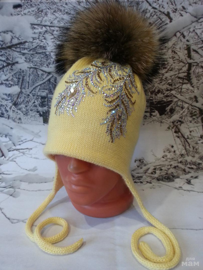 Декорирована перышками из хрустальных страз ручной выкладки и 2-мя пришивными камнями-капельками.