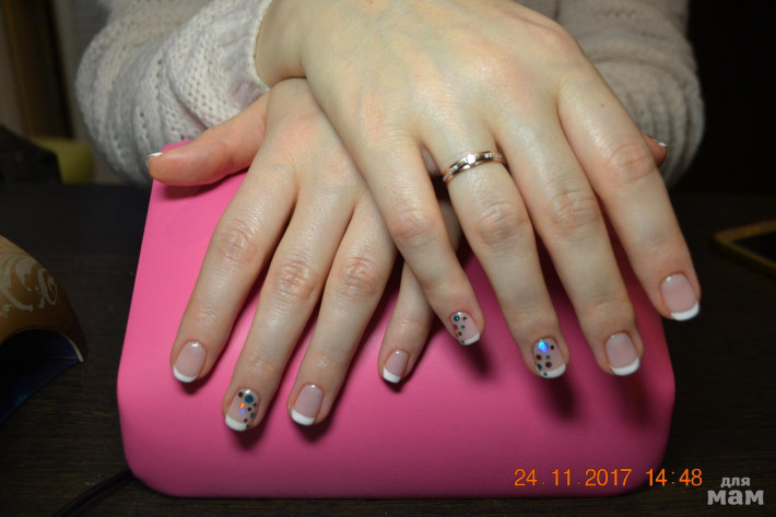 Комбинированный маникюр + наращивание ногтей + гель-лак - 800 руб.