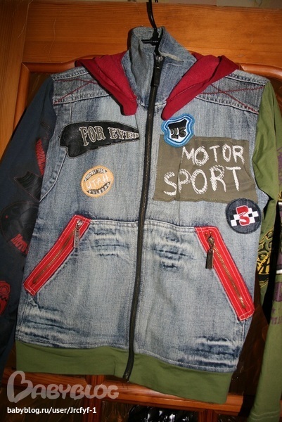 3. Джинсовая курточка р.128, состояние очееень хорошее,капюшон отстегивается, он трикотажный, как и рукава - 1200 руб