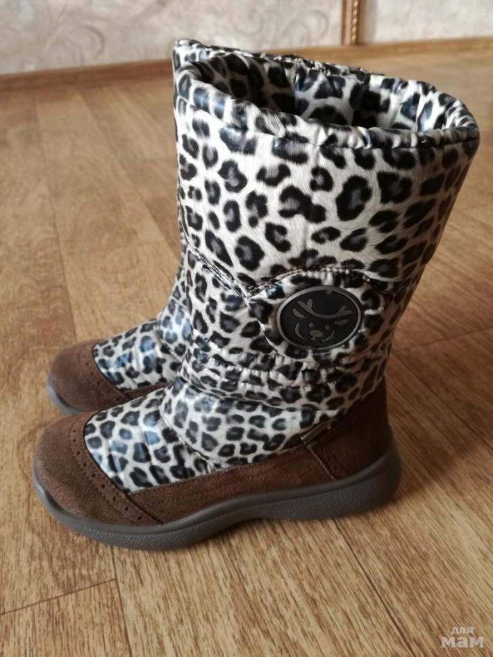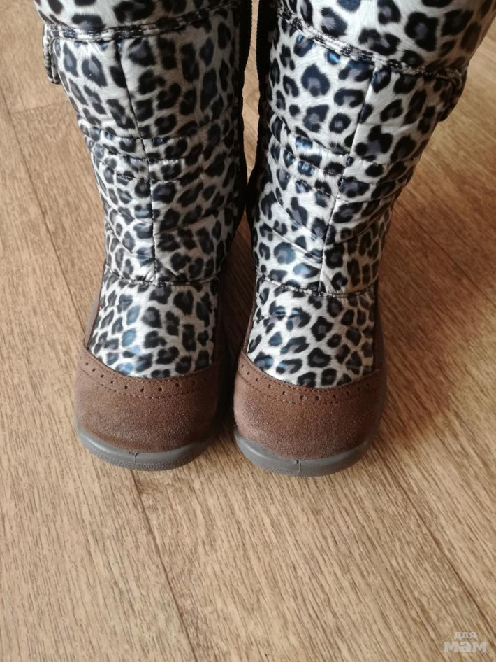 В очень хорошем состоянии - носили мало, только на выход. Стелька не вынимается, но мы на 19,5 см. стопу еще одевали. Можно и зимой и холодная весна-осень.