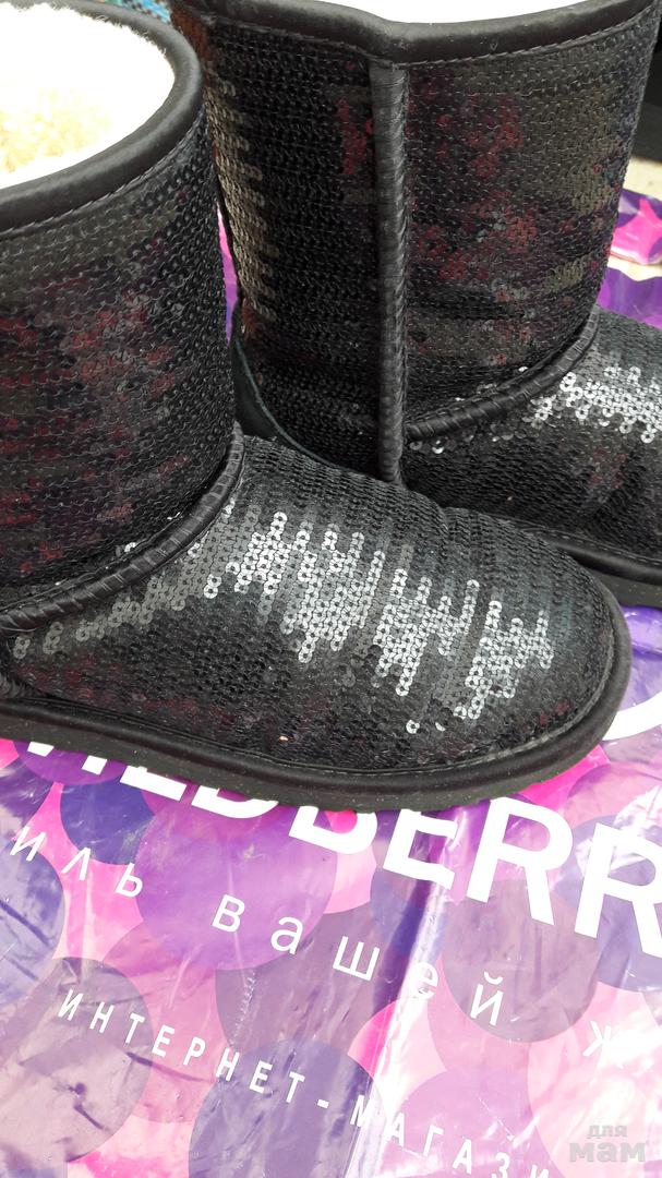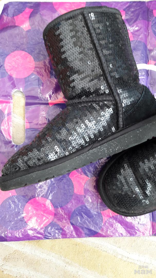 Угги с паетками .Бу 2 раза -не подошел размер.Полностью натуральные очень густой мех.