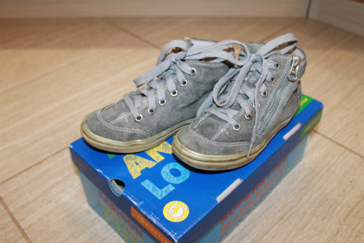3. Ботинки Richter(Рихтер) серого цвета, замшевые, на не скользящей резиновой подошве. С боку молния, очень удобно одевать ребенку самому. Звездочки по бокам при ходьбе мигают (на одном ботиночке два огонька не работают). Состояние хорошее. Размер 30. Цена 1200 руб.