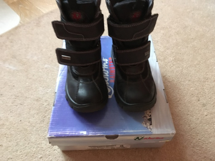 Натурино. Европейская маркировка 29. По стельке 18 см Мембрана снаружи, внутри мех из натуральной шерсти. Достаточно высокие, легкие и теплые. Правильная анатомическая стелька. Цвет черный (антрацит). Цена 2000 руб 1500 руб