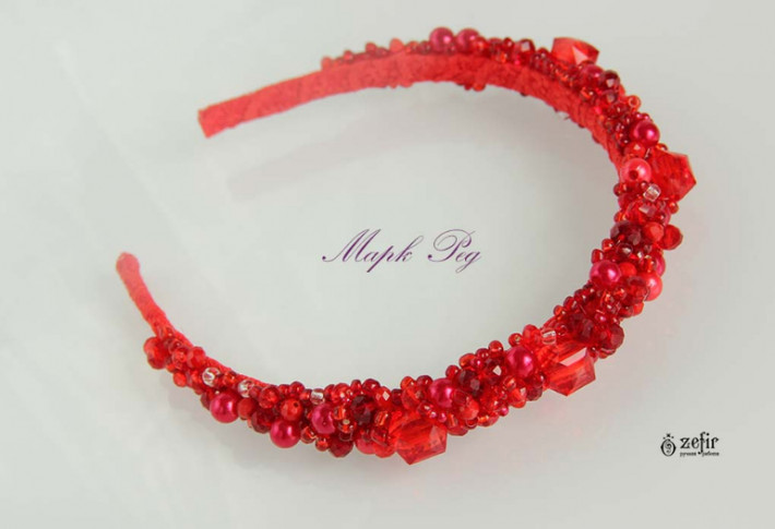 расшитый ободок "Аквамарин" 1800 жемчуг, чешские бусины