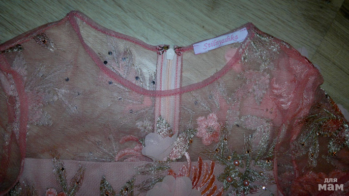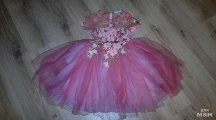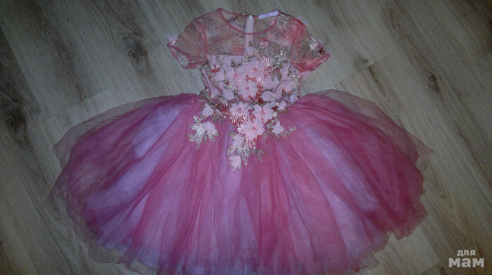Шикарное, мега пышное платье Стильняшка маркировка 134р.Можно одевать 128-134р. Супер красивое. верх расшит жемчугом ,вышиты цветы, спереди и сзади обклеено стразами (приклеены намертво). Подклада хлопок. Верх тянется засчет трикотажа на лифе. Спинка прозрачная. Застегивается на потайную молнию сзади.Состояние нового.