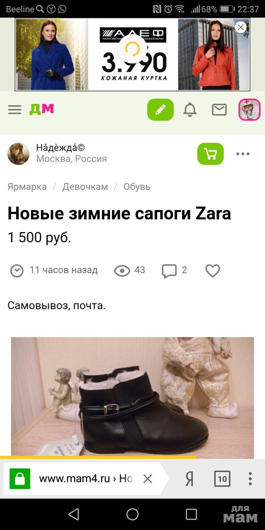 Новые сапожки Зара, натуральная кожа натуральный мех 24 р (14,8 см) 1500 руб.