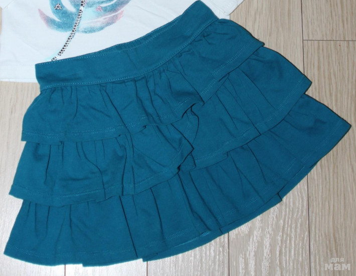 1. Юбка с рюшами темного цвета морской волны. Хлопок. Размер 4.