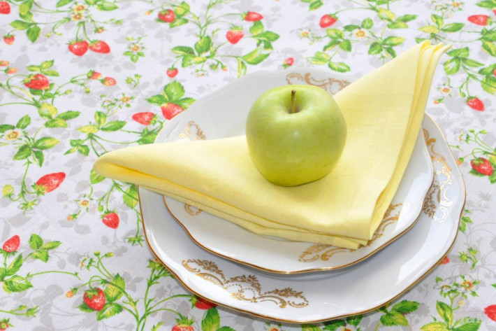 В комплект можно подобрать салфетки из нежно желтой ткани или нежной зелени.