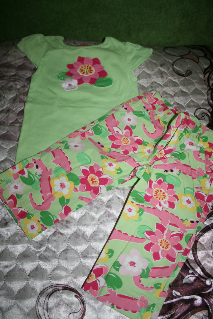 Продаю комплект 2 футболки и бриджи Джимбори на 5 лет.На белой футболке крокодил из паеток.Состояние идеальное. Очень красиво смотрится!