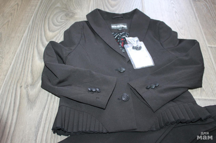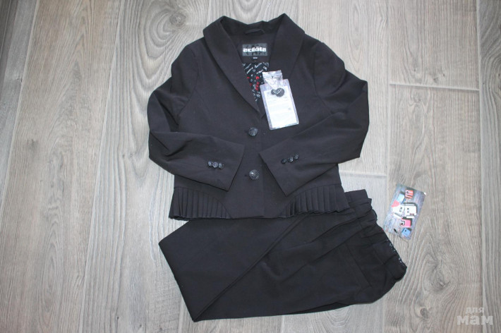 Продам новый брючный костюм Acoola, размер 122. Покупала дочке в 1 класс, не пригодился. На брюках есть утяжка. Пиджак очень красивый, сзади рюши. Смотрится все вместе очень стильно.