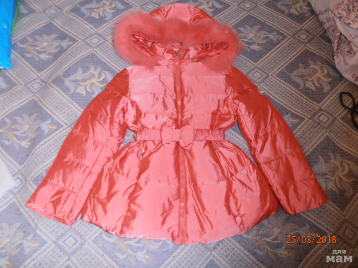 Размер 116, большемерит, можно носить при гораздо большем росте и при меньшем будет хорошо смотреться, рукава подворачиваются, талия регулируется пояском, в комплекте 2 пояса, один совершенно новый, не использовали. Красивый, сочный, коралловый цвет, горлышко на резинке, хорошо прилегает к телу, все закрыто, мех натуральный, пушистый, очень красивая моделька. Девочки, заберите, курточка практически новая, зачем переплачивать огромные деньги, отдаю по символической цене для этой марки. Могу еще снизить цену, если заявленная не устраивает.