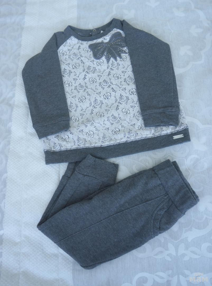 10. Спортивный костюмчик Mayoral маркировка 4(104), маломерит, лучше на 3г. На бантике не хватает пары сраз и вообще бу активно, но нюансов нет 1000руб