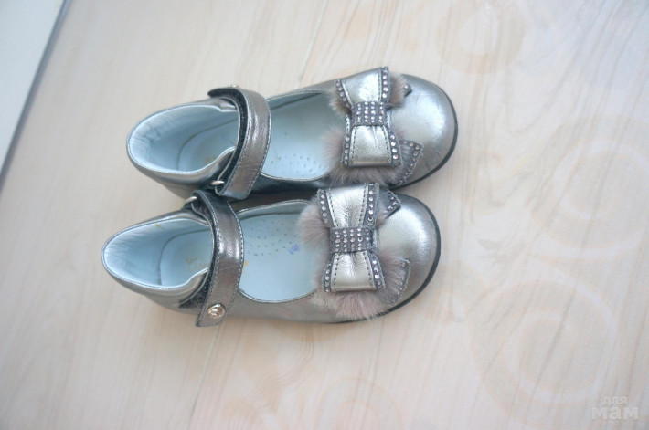 На носах есть царапки, мы носили в качестве сменки на кружок. Но царапки в глаза не бросаются, за счет того, что кожа блестящая. Мягкие, легкие. На подошве одна пяточка стерта немного сильнее, чем другая, при носке не видно, но тем не менее . Мне кажется, хороший вариант туфелек на сменку, всегда ребенок выглядит красиво)